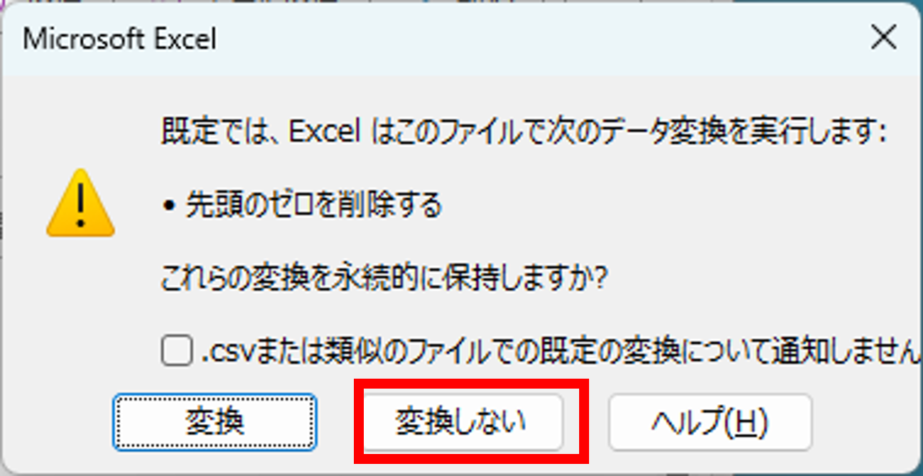 ※2 次のメッセージが表示された場合は「変換しない」を指定します