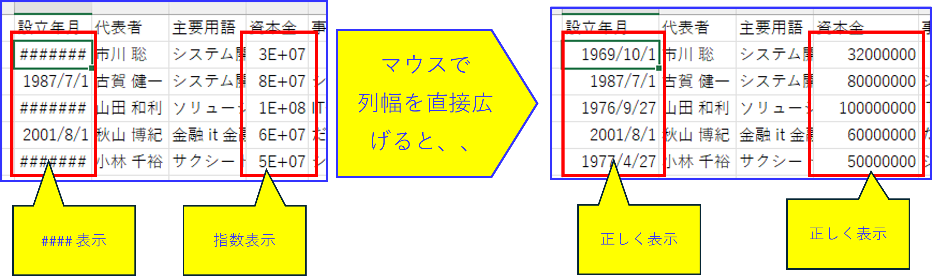 ※1 列幅が狭いと、#### や 指数表示されることがありますが、