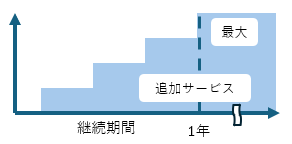 ・ご利用の継続期間が数か月ごとにサービスを追加。概ね1年程度で最大サービス。以降はご利用が継続されるかぎり最大サービスがずっと継続。 ・長期予定の場合は、当初から最大サービス。
