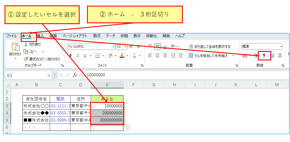 ◇ 3桁区切り