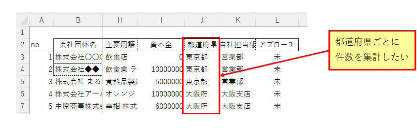 営業リストを管理しているとき、区分ごとの件数や合計額を出して営業活動に役立てたいと思う事があると思います